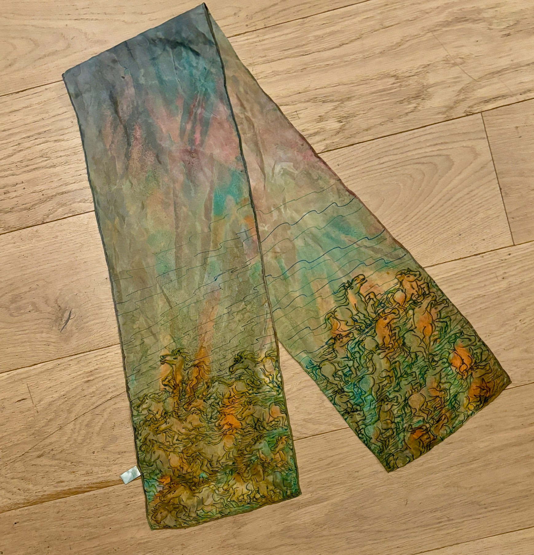 Hand-Painted Silk Horse Scarf