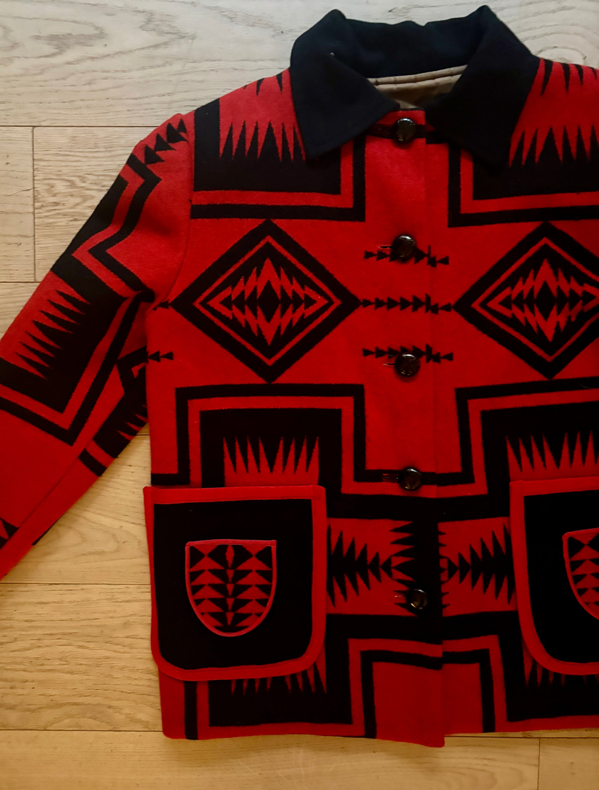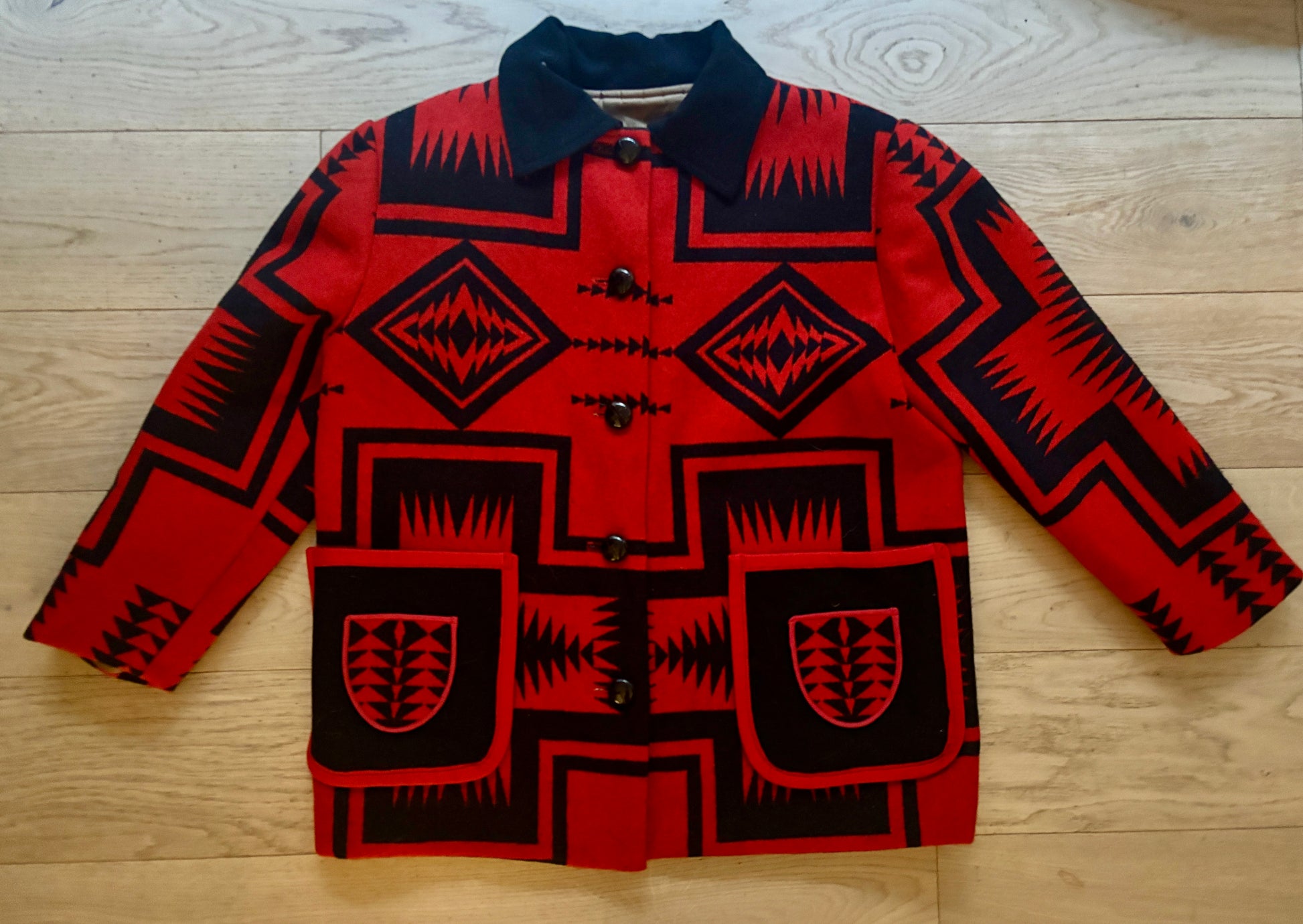 Incredible quality handmade vintage blanket coat, feels like a Pendleton-quality blanket.