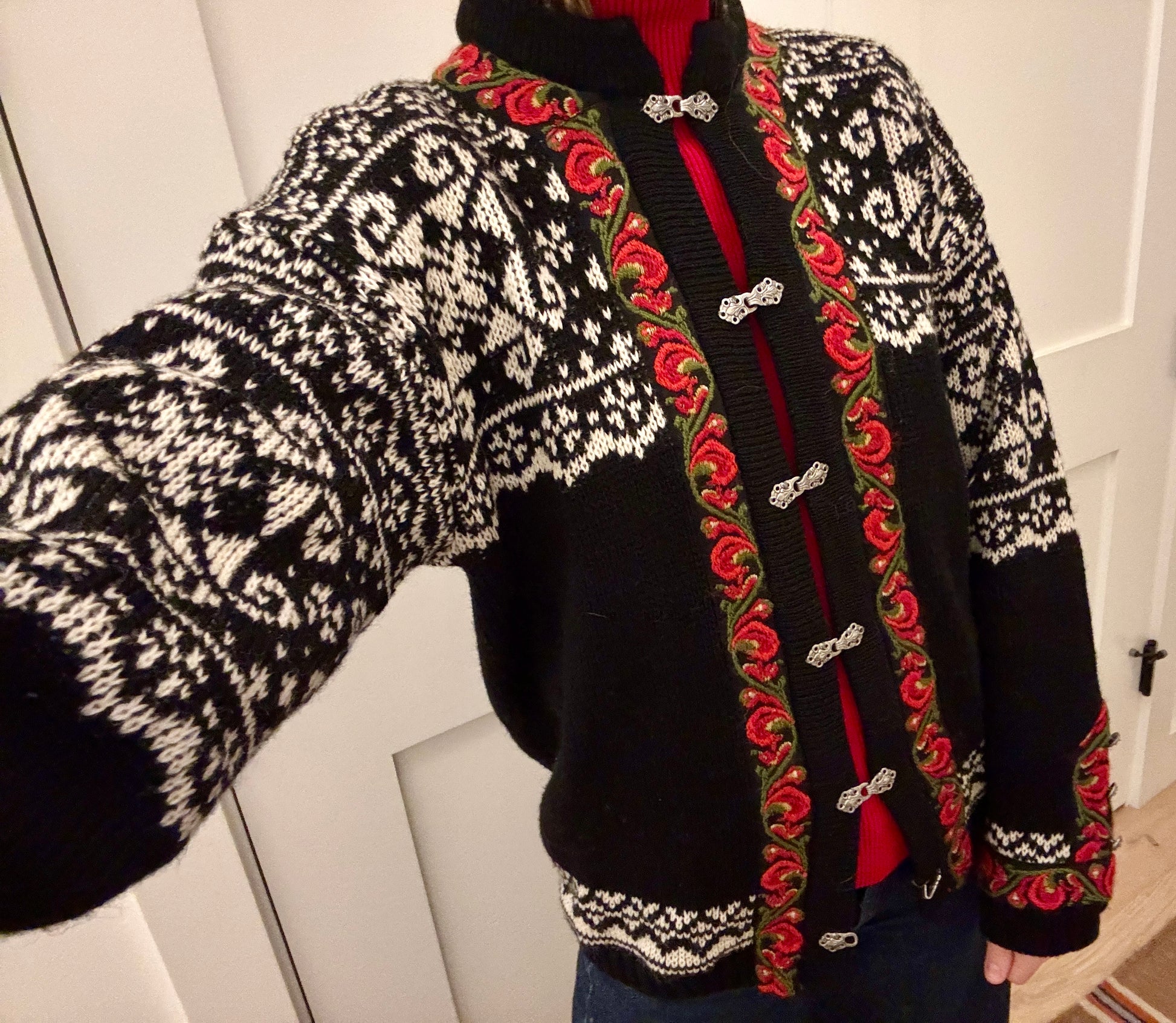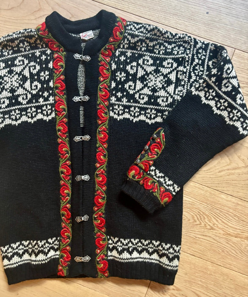 Vintage Norwegian wool cardigan with beautiful detailing. An ideal winter layer!