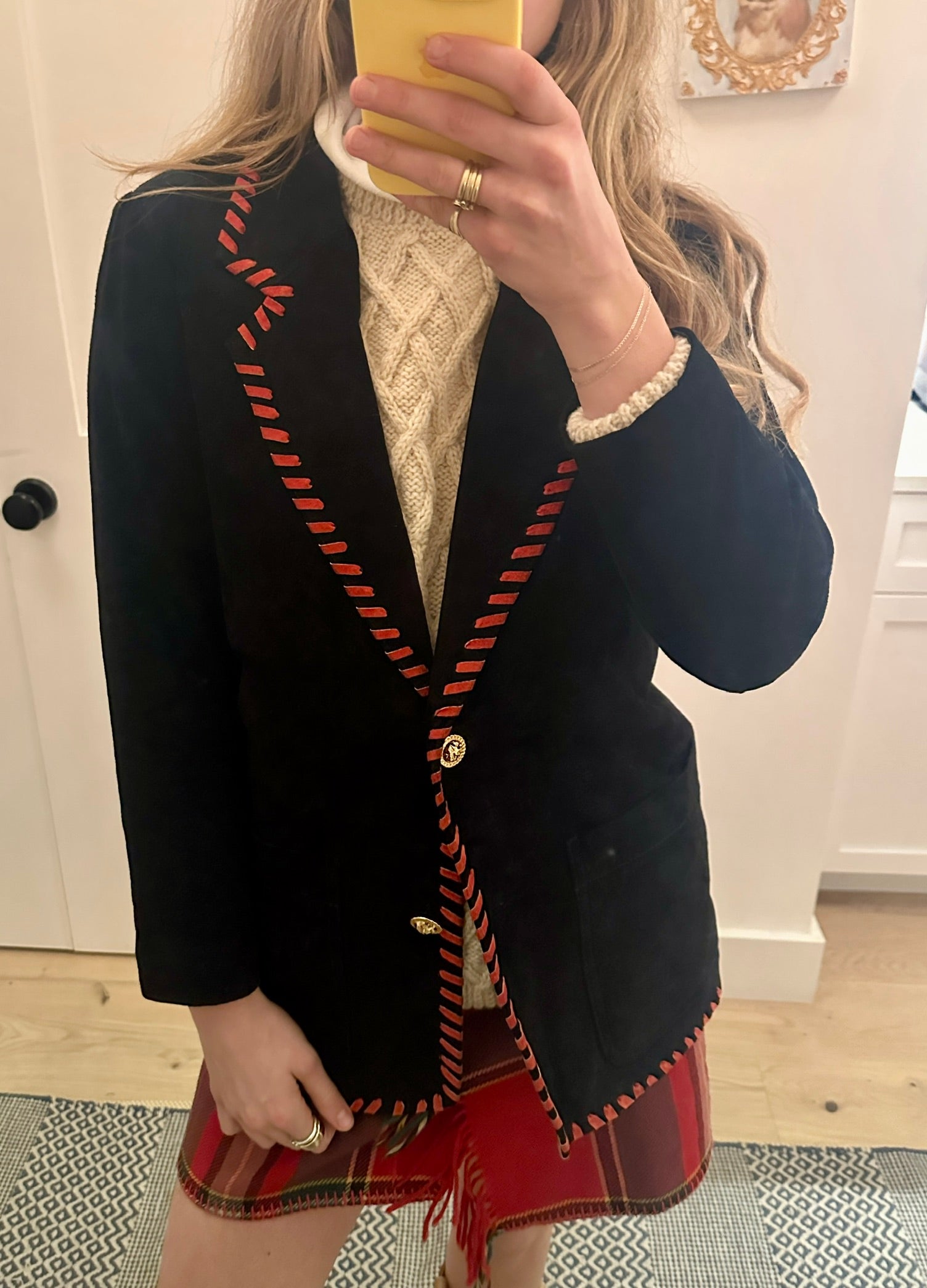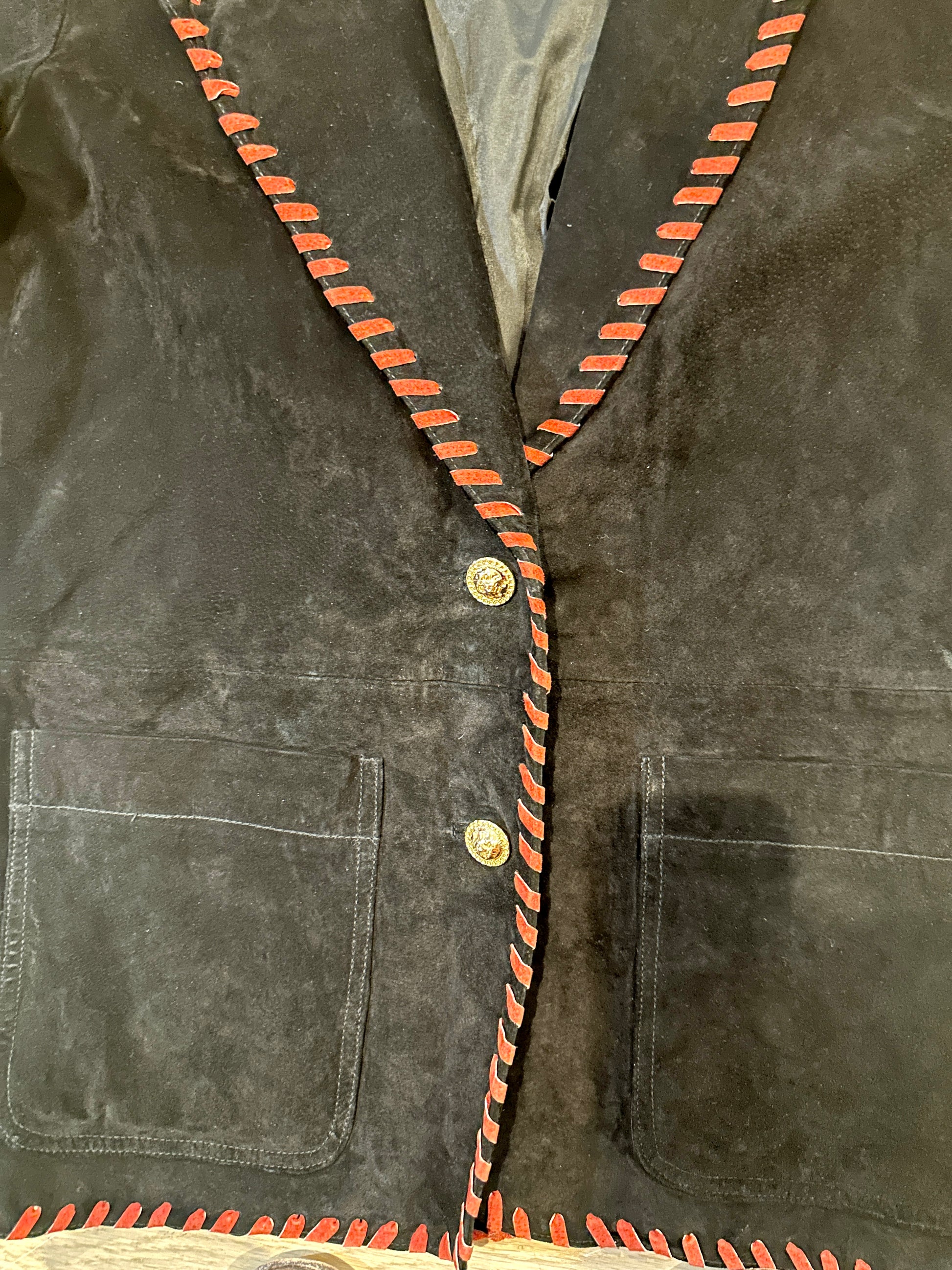 Vintage suede blazer with red stitching & gold buttons from the brand Atlantic Beach.