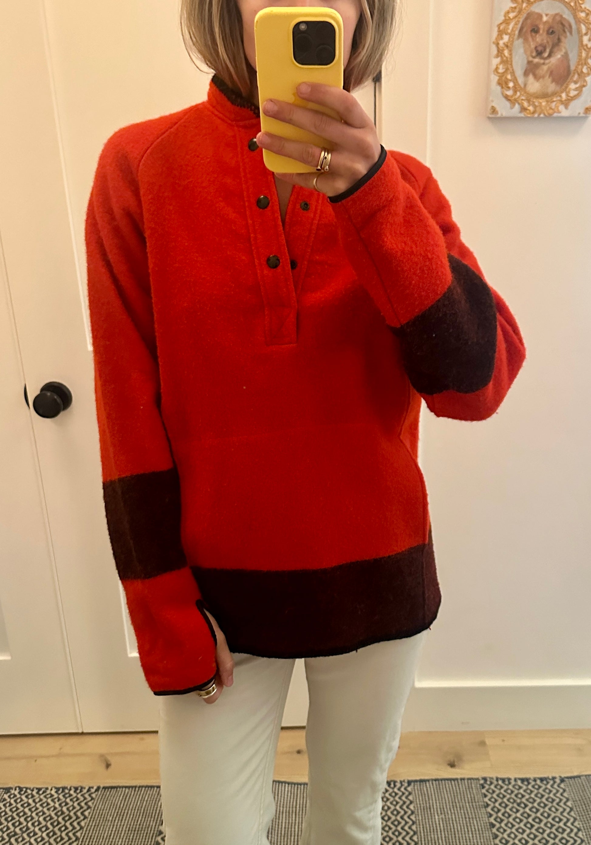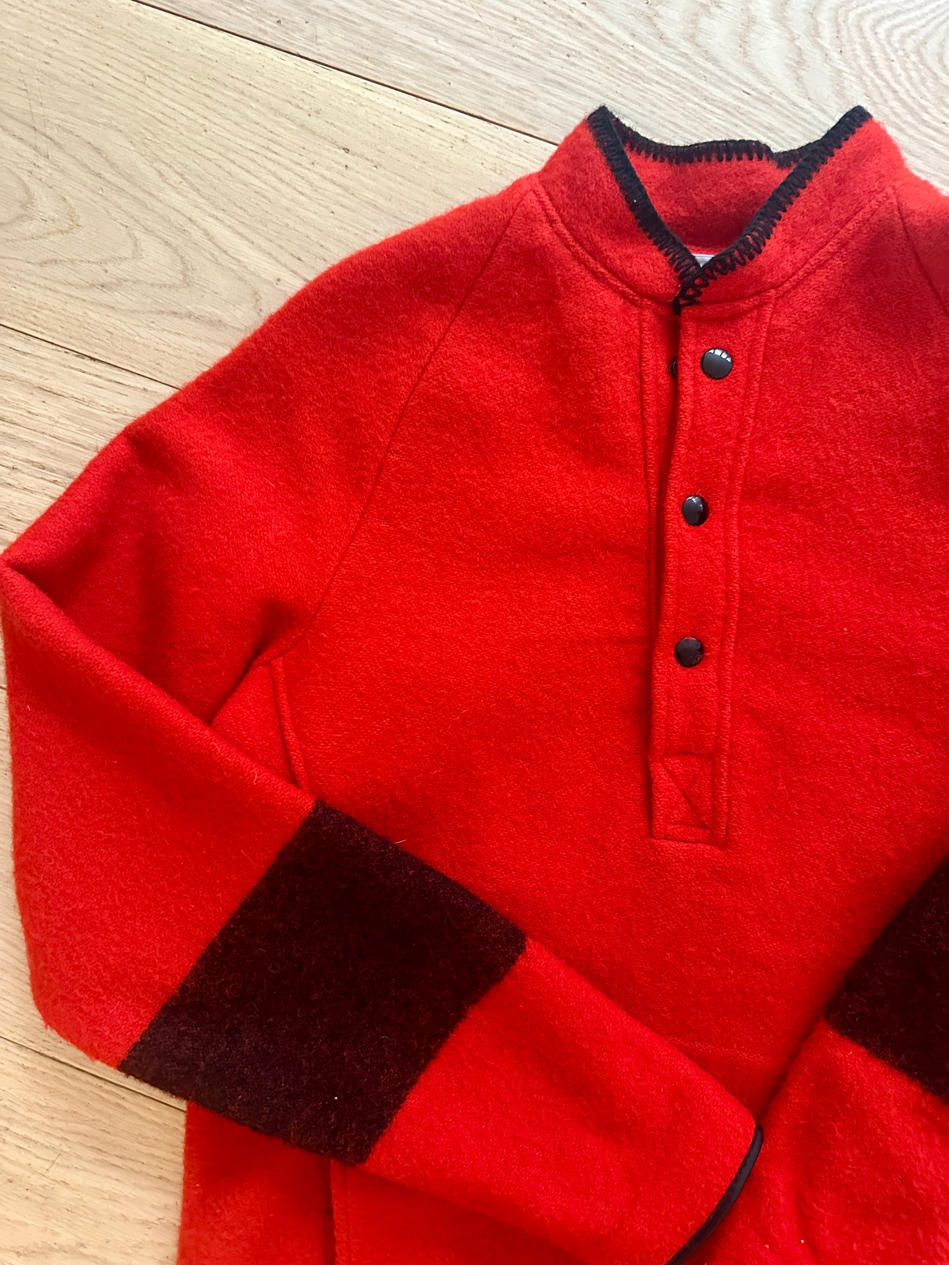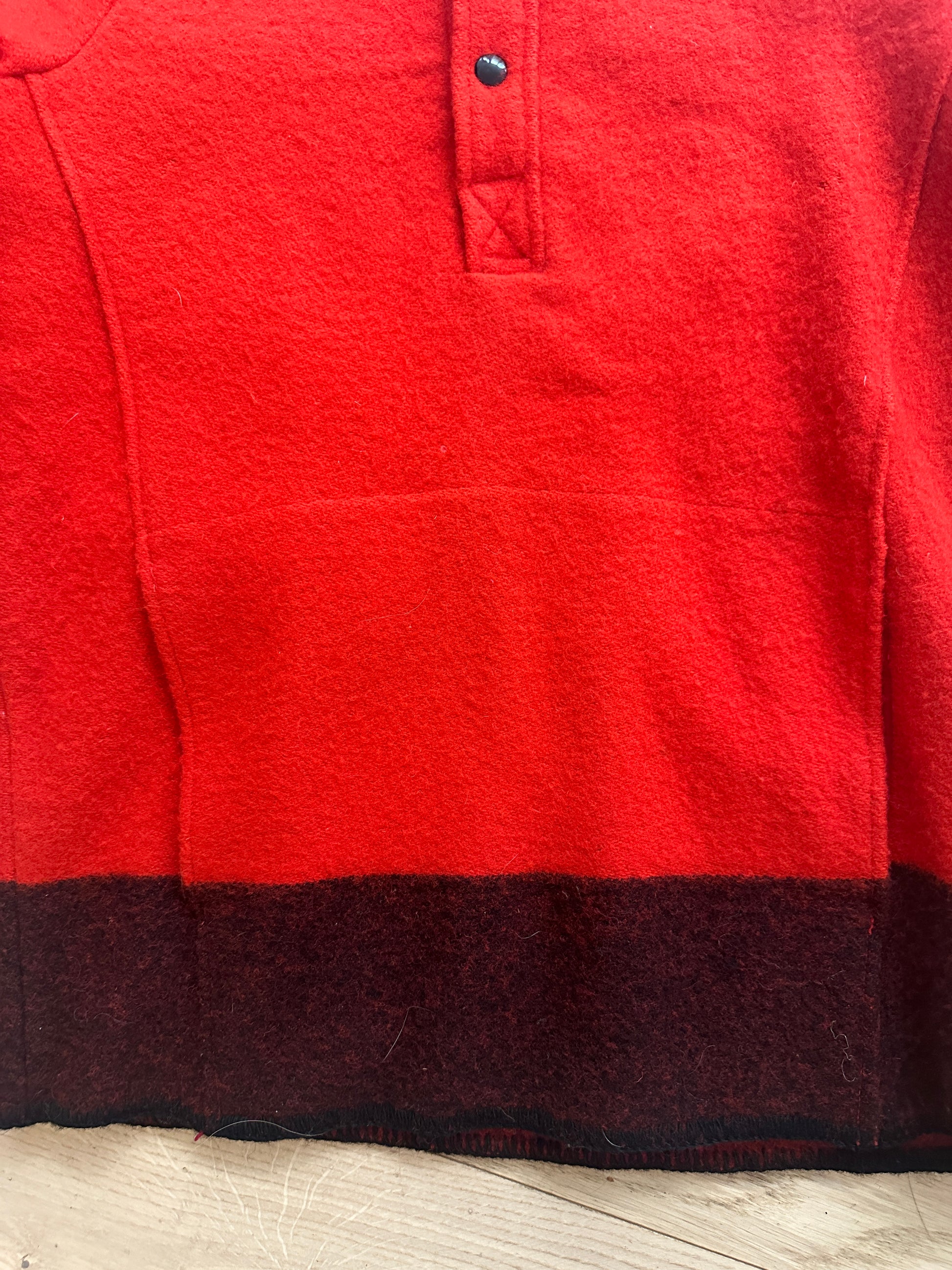 Perfect vintage Woolrich wool-blend pullover in a classic Hudson Bay fabric with a kangaroo pocket.